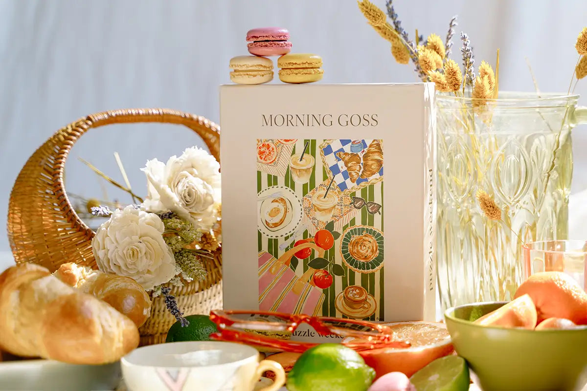 Weekends are for coffee and croissants, with a side of hot goss! This 500 piece puzzle, illustrated by textile print designer & artist Charlie Taylor, puts brunch and buzz together - just as they belong. Made with thick blue puzzle board, this cute puzzle features a satisfying satin matte finish. Whether you and your crew prefer to sip or spill the tea, Morning Goss is perfect if you’re looking for foodie gifts, gifts for coffee lovers, or the ultimate little treat to keep for yourself.